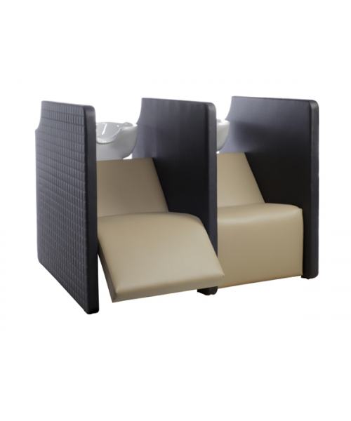 Парикмахерская мойка "Privacy Wash E 2P Shiatsu" - двухместная с высоким уровнем комфорта и приватной зоной. Мойка оснащена системой воздушного массажа AIR-SHIATSU. Также мойка оснащена электрической подножкой, обеспечивая клиенту максимальный комфорт. Мойка комплектуется глубокими керамическими раковинами с регулировкой угла наклона и комплектом смесителя. Обивка - искусственная кожа высшего качества.