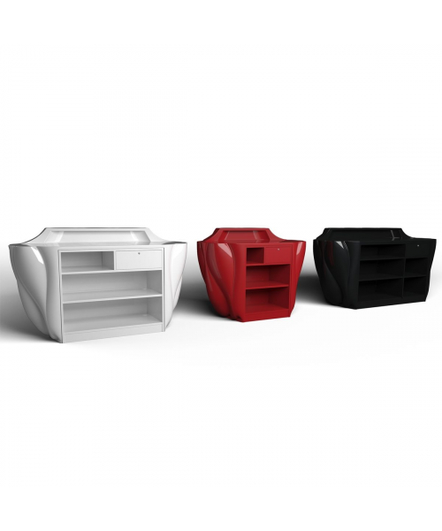 Стойка администратора "Sea Urchin 216" - с изогнутым декоративным фасадом. Корпус и наполнение стойки с артикулом G-м60003188 выполнены в ламинате. Фасад выполнен из пластика в черном, красном или белом цвете.