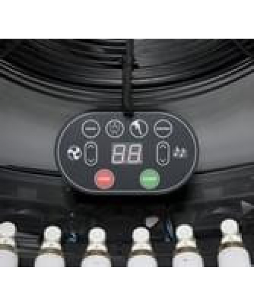 42 лампы по 200W; мощность 8400 W; размеры: высота 232 см х глубина 100 см (с открытой дверью 160 см) х ширина 120 см; пульт администратора (3 счетчика), который позволяет контролировать работу солярия с ресепшена вашего салона; сенсорный пульт клиента. Удобное управление функциями солярия внутри кабины. Регулировка мощности вентилятора, громкости музыки и голосового сопровождения, а так же включение/выключение опций "Аква" и "Арома"; проигрыватель МР3 с активным сабвуфером и картой памяти на 1 Гб (уже содержит набор популярных треков, который вы можете расширить по вашему желанию; голосовое сопровождение меню солярия; мощный вентилятор в крыше солярия (7 ступеней регулировки мощности обдува); зеркальный пол; автоматический выключатель и УЗО (устройство защитного отключения) 40А, пятиконтактная вилка 380 V евростандарт 32 А; функции "аква" (мелкодисперсное распыление воды из форсунок, расположенных в полу солярия и "арома"; возможные цвета: черный, черный металлик, серебристый металлик. Дополнительные опции:
